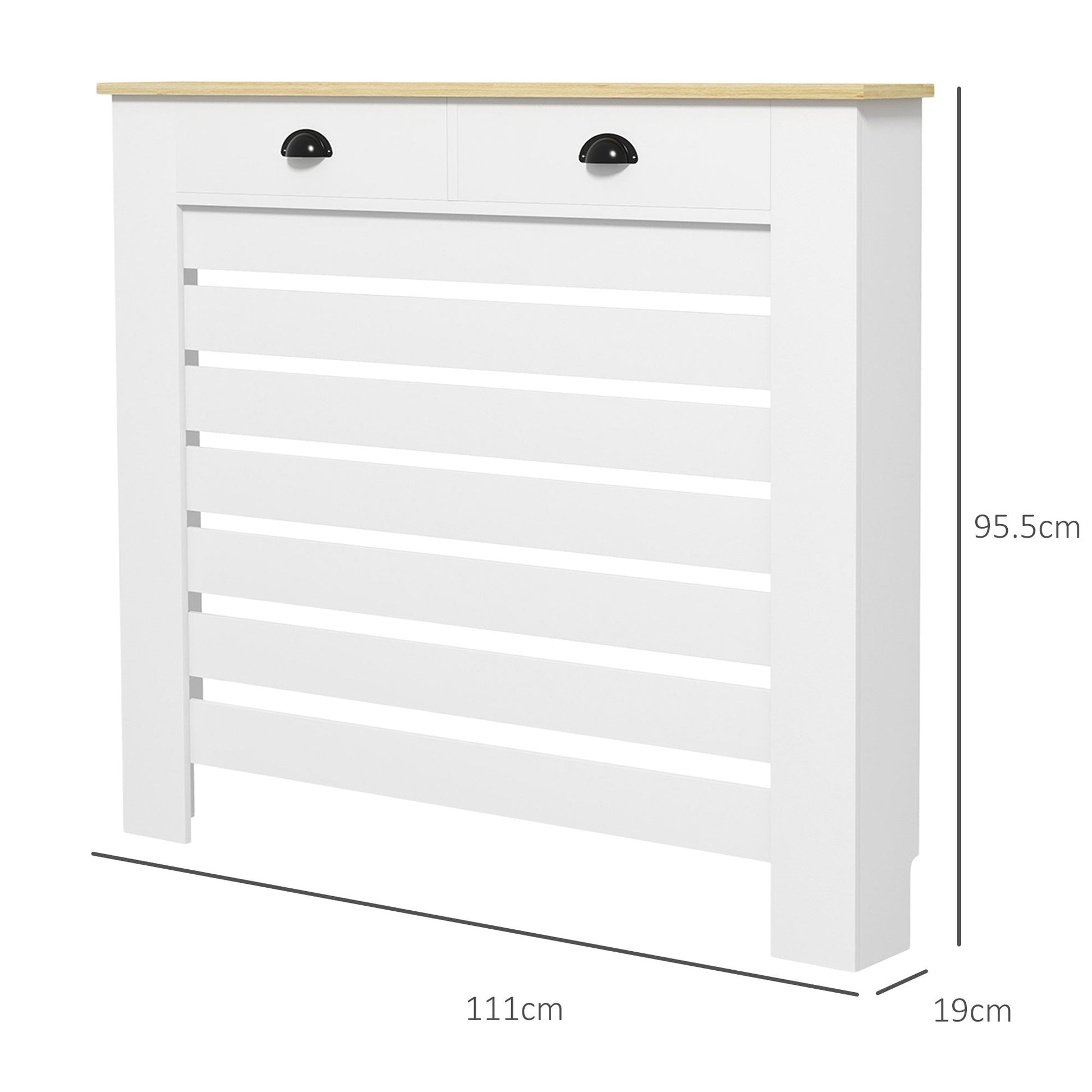 A safe and stylish addition to the home—this HOMCOM slim radiator cover. Made from a robust blend of MDF and particle board, it comes in a slatted design to allow the heat to escape: keeps your space warm and cosy whilst protecting you from directly touching the radiator for safety. Heating cover is complete with a handy top drawer for storage.